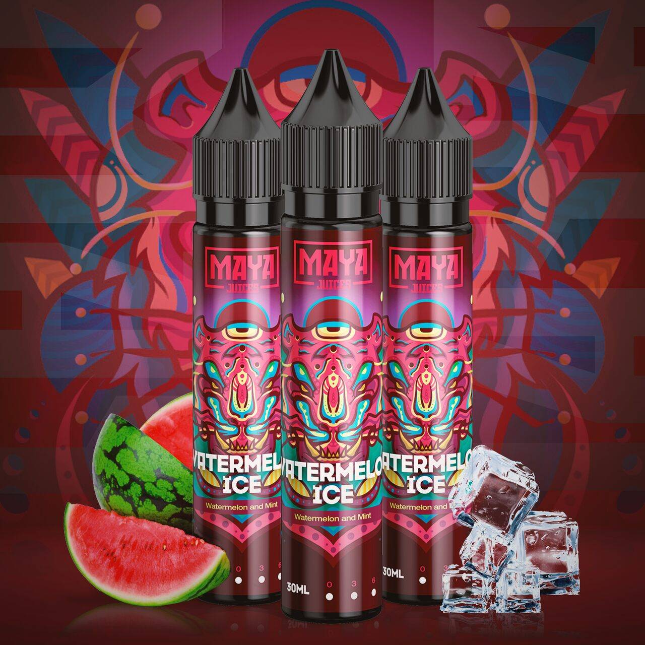 Desfrute da combinação perfeita entre melancia madura e menta refrescante com o Watermelon Ice, produto premium da Maya Juices para vaporização intensa.